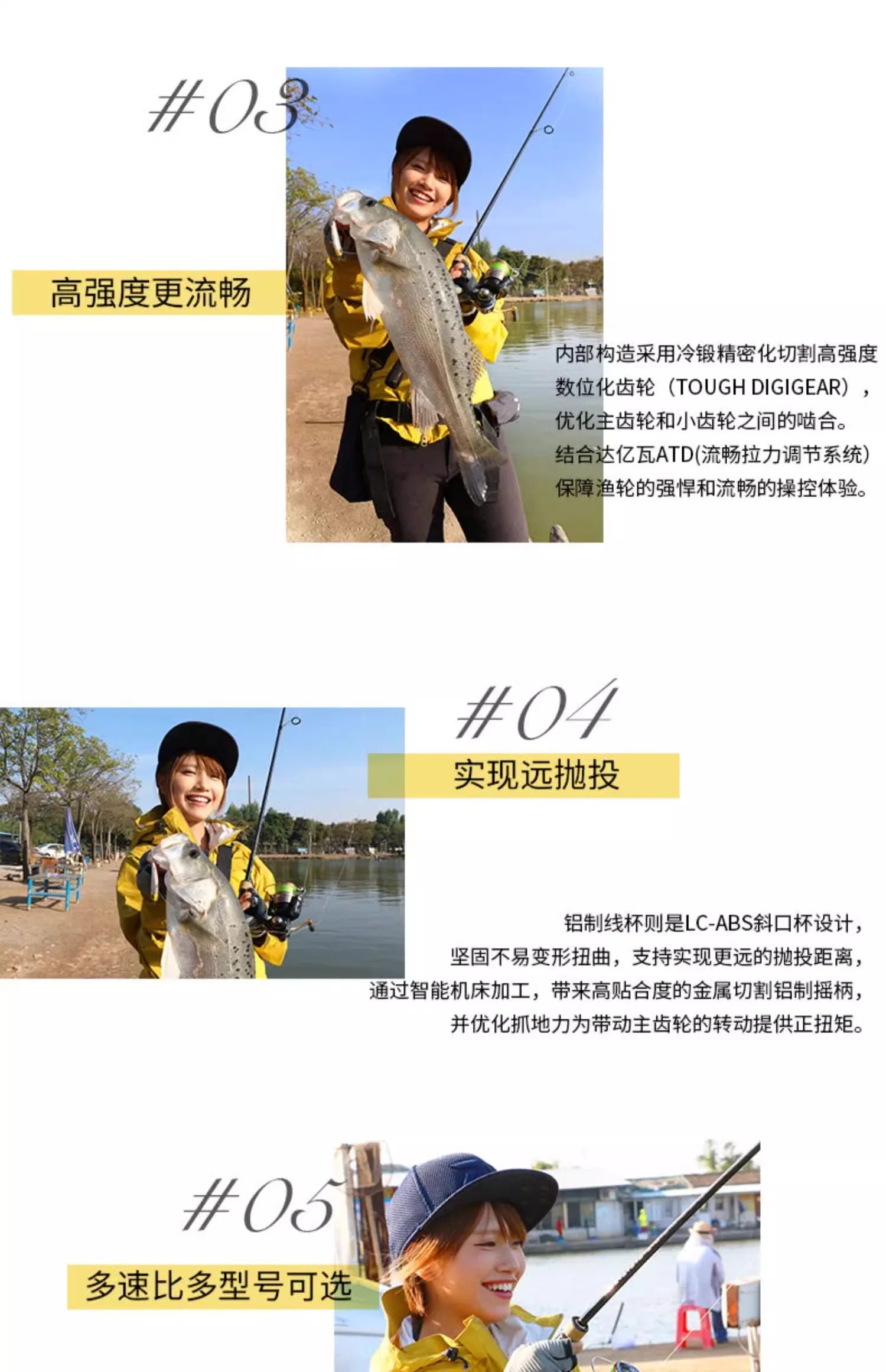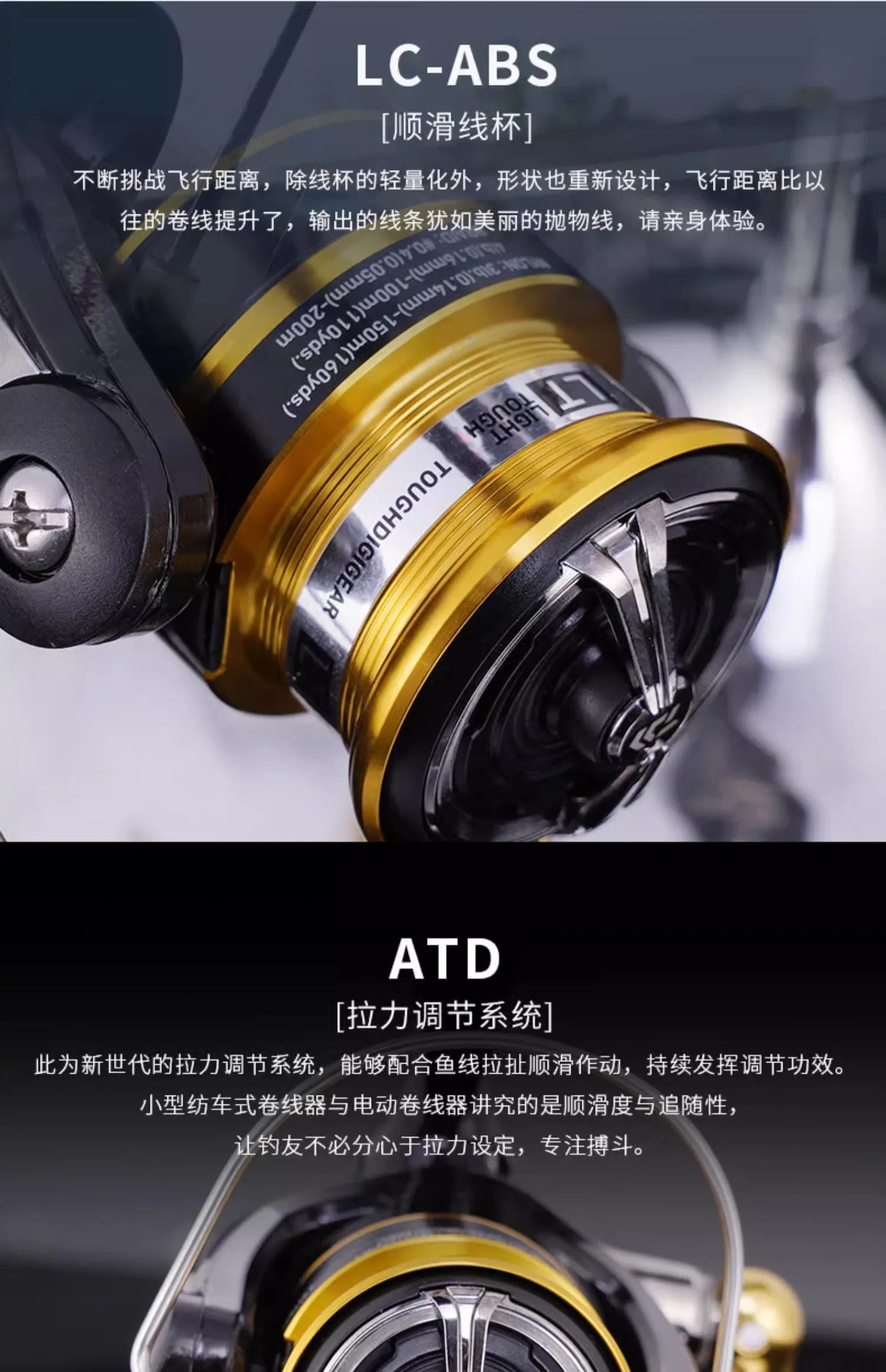 O corpo compacto e leve (apenas 400 g) reduz a fadiga durante longas pescarias, enquanto o rotor balanceado oferece recolhimento suave e uniforme. O carretel ABS foi projetado para arremessos longos e precisos, minimizando torções de linha e melhorando a saída em linhas finas ou multifilamento.